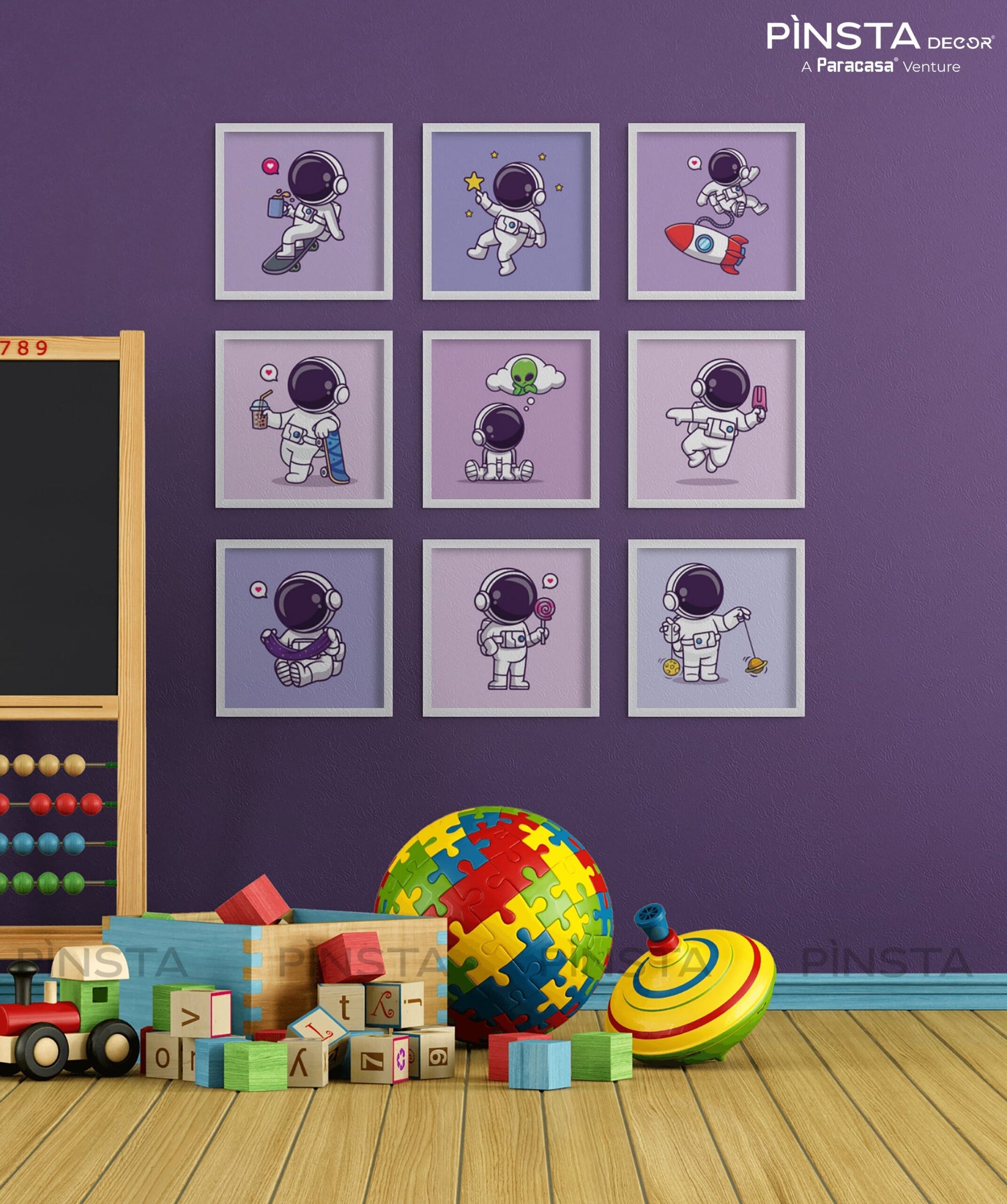 Whether you want to add a personality touch to your child's bedroom, create a fun and stimulating playroom, or inspire their imagination, our Cosmic Crawler Set of 9 canvas prints is the perfect choice. Its playful design and high-quality craftsmanship will bring joy and happiness into your child's life.